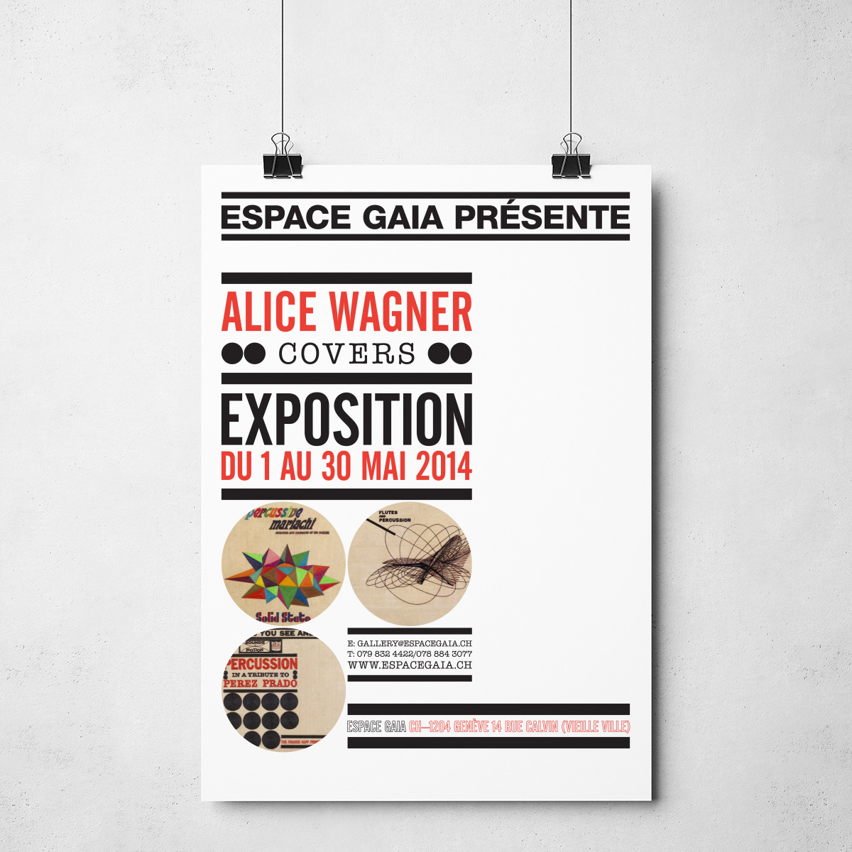 Meghívók és poszterek tervezése a genfi Espace Gaia galéria számára.