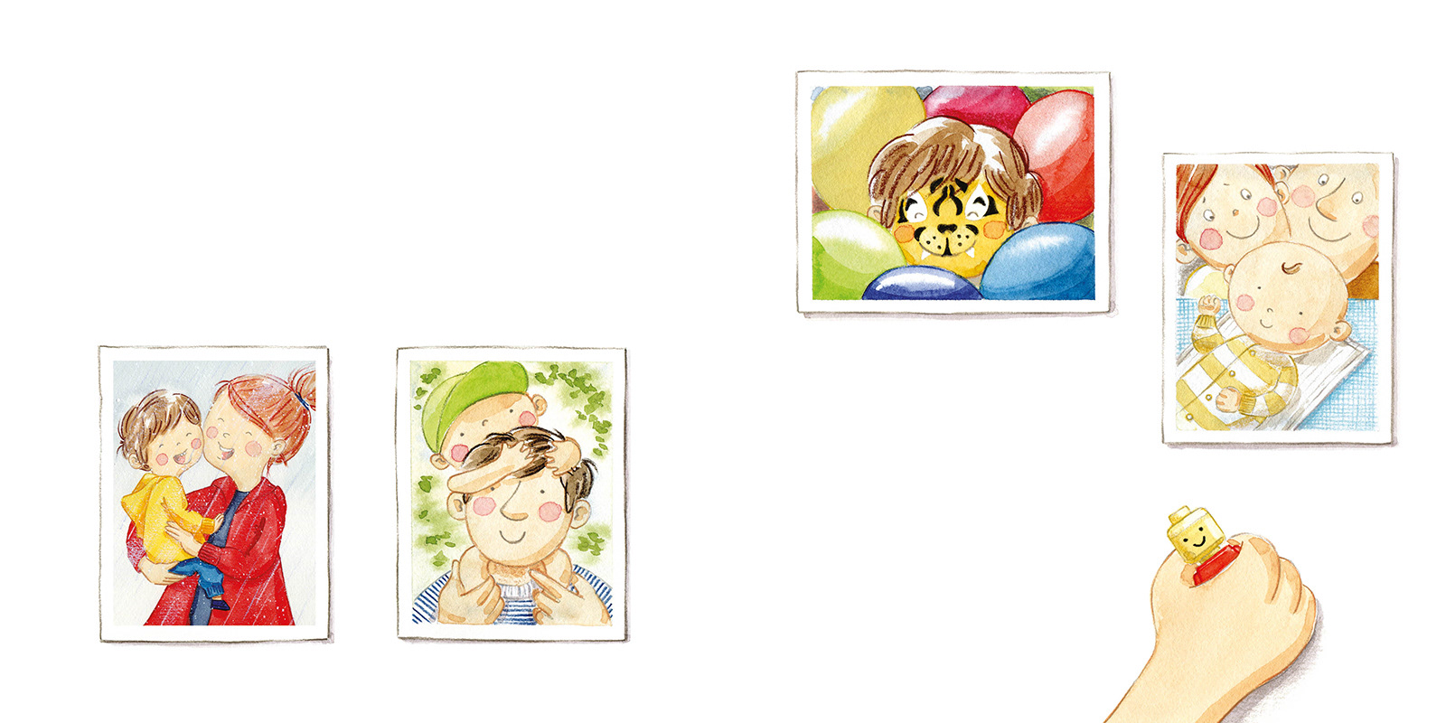Illusztrációk Farkas Nóra, Szeretünk téged! című mesekönyvéhez. Segítőkönyvek-sorozat, Manó könyvek, 2024.