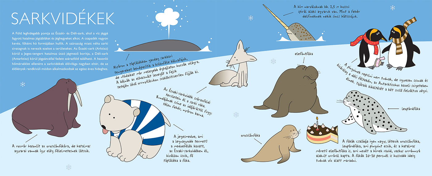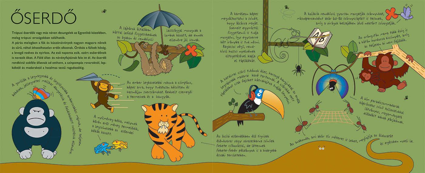 Távoli ismerősök című gyermek ismeretterjesztő kiadvány terve és illusztrációi.